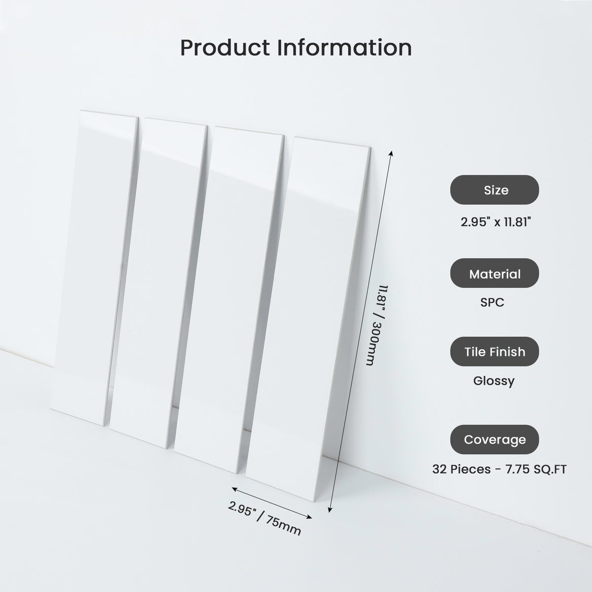 Size & Package: Each tile is 2.95"x 11.81", and each package contains 32 pieces, covers about 7.75sq.ft. Recommend to take 3-5% for installation losses concern.
