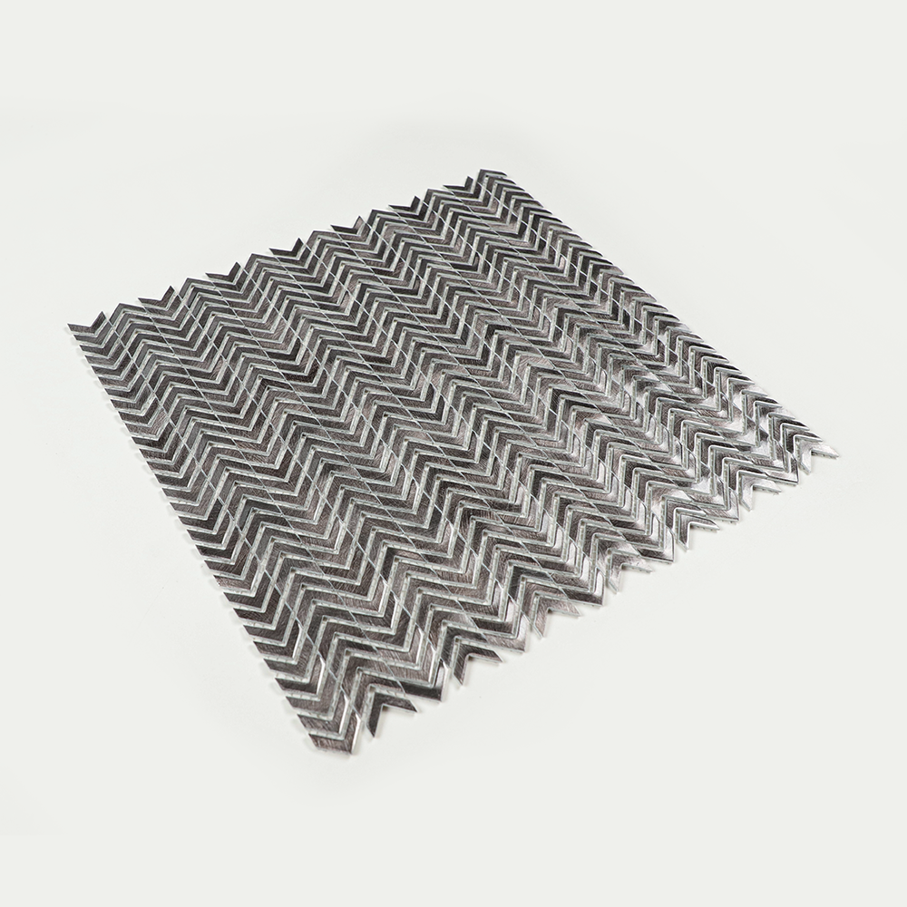 Durable and Long-Lasting: Our Mesh Mounted Gravity Aluminium Metal Elements Arrow Mosaic Wall Tiles are made of high-quality gravity aluminium, ensuring a durable and long-lasting finish for interior wall decoration.