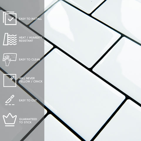 Resistant to Humidity and Heat: Built to withstand the challenges of kitchen and bathroom environments, peel and stick backsplash are resistant to humidity and heat. Tiles should not directly submerse in water. Not intended for use in Shower or Bath Tubs.